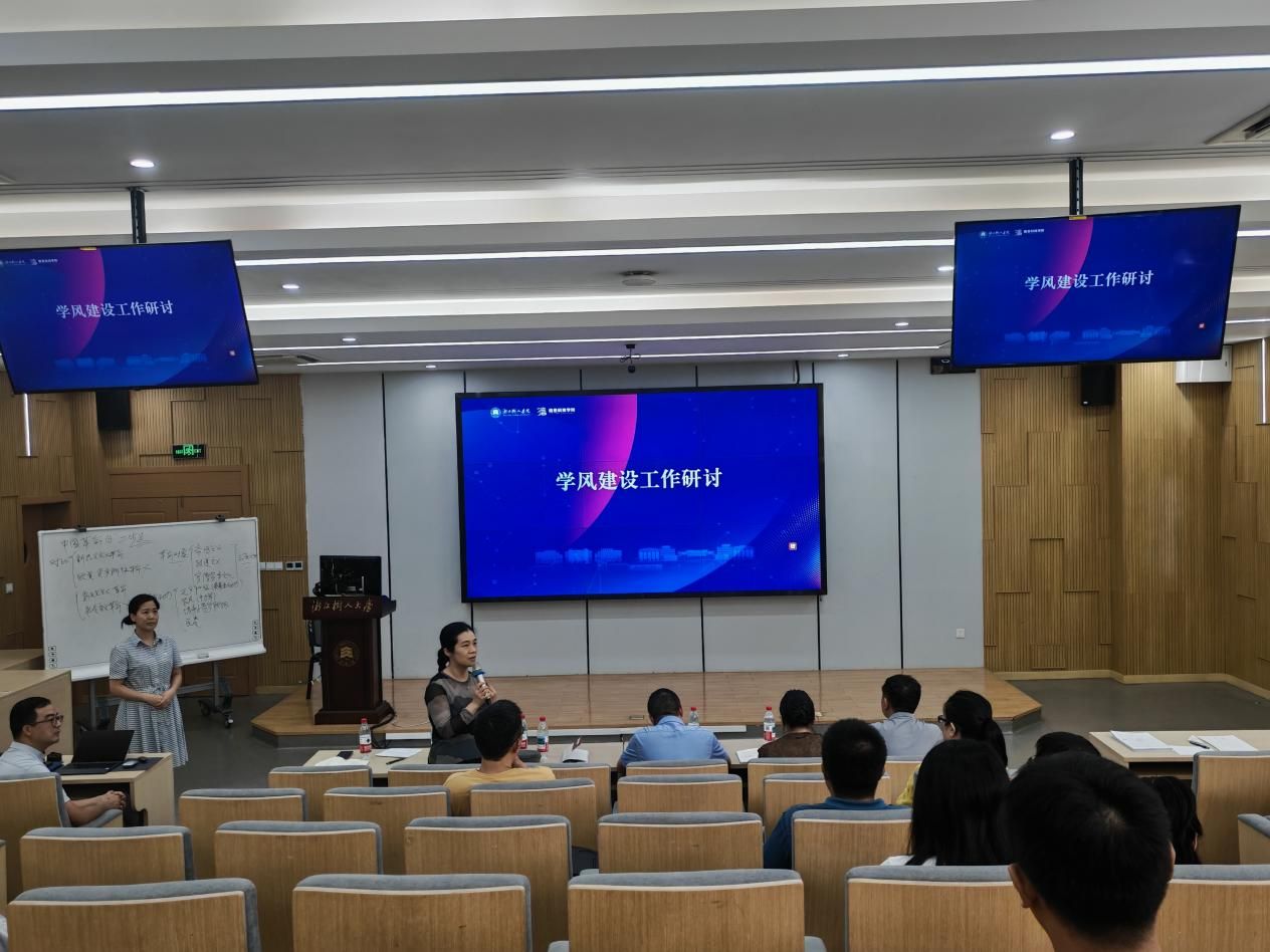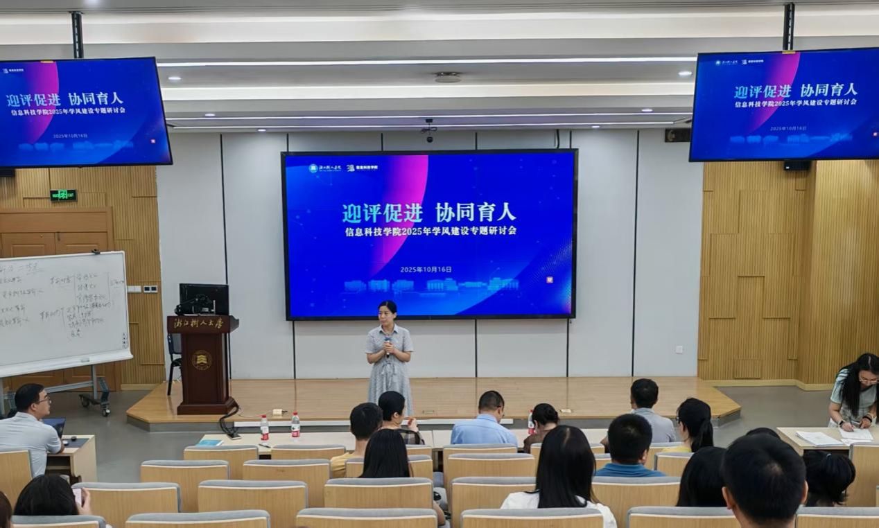 10月16日。信息科技学院召开了“迎评促进,协同育人”2025年度学院学情学风分析研讨会。会议由学院党委书记陈超祥主持。家杨学院赵蓓蓓副院长、崇德书院李义唯书记,重智书院杜欣书记,全体系主任、辅导员、班主任参加了此次会议。会上戴国勇副院长从课程成绩入手,分析了近几年挂科率较高的课程、学生群体,以及其背后的深层次原因,并提出了今后教学改革的方向和重点举措。丁健龙副书记从近三年全院的处分以及学习预警等数据出发,对全院的生情、学情变化做了系统深入的分析,针对学风考风的一些新变化,提出了学院、书院、家扬、教研室、以及班主任之间如何密切协同的一些设想。