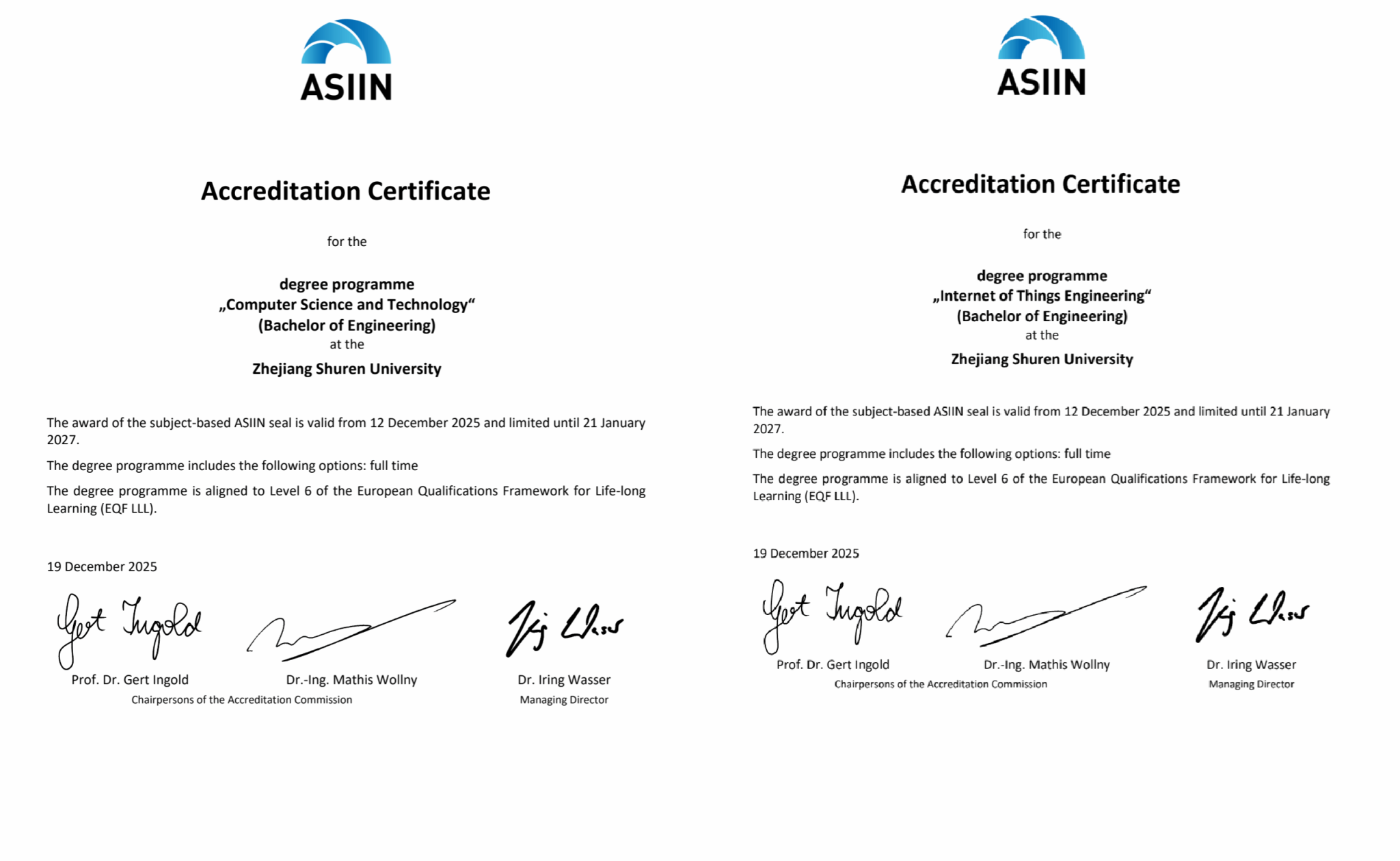 近日,我校再接重磅喜讯——接到德国高等工程教育认证委员会(ASIIN)正式通知,学校“计算机科学与技术”“物联网工程”两大专业成功通过德国工程教育专业认证。此次认证通过,标志着我校这两个专业的建设水平再次获得欧洲专业认证权威机构的高度认可,为培养具备跨国职业资格的高素质工程师奠定了坚实基础,也为学校应用型人才培养与国际接轨迈出了关键一步。