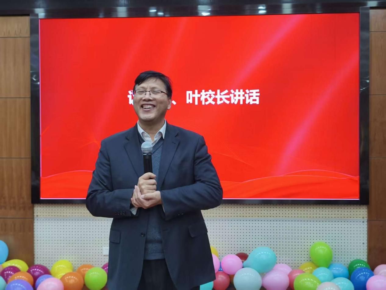 活动最后,副校长叶时平发表讲话。他高度肯定了信息科技学院和信息化建设处在过去一年中为学校事业发展所作出的重要贡献,对全体教职工的辛勤努力表示感谢。叶校长指出,站在新的起点,希望两部门继续加强协同,聚焦学校发展目标,深化改革创新,提升育人质量与服务效能,以更加饱满的热情和更加扎实的作风,共同谱写2026年高质量发展的新篇章,并为大家送上了诚挚的新春祝福。