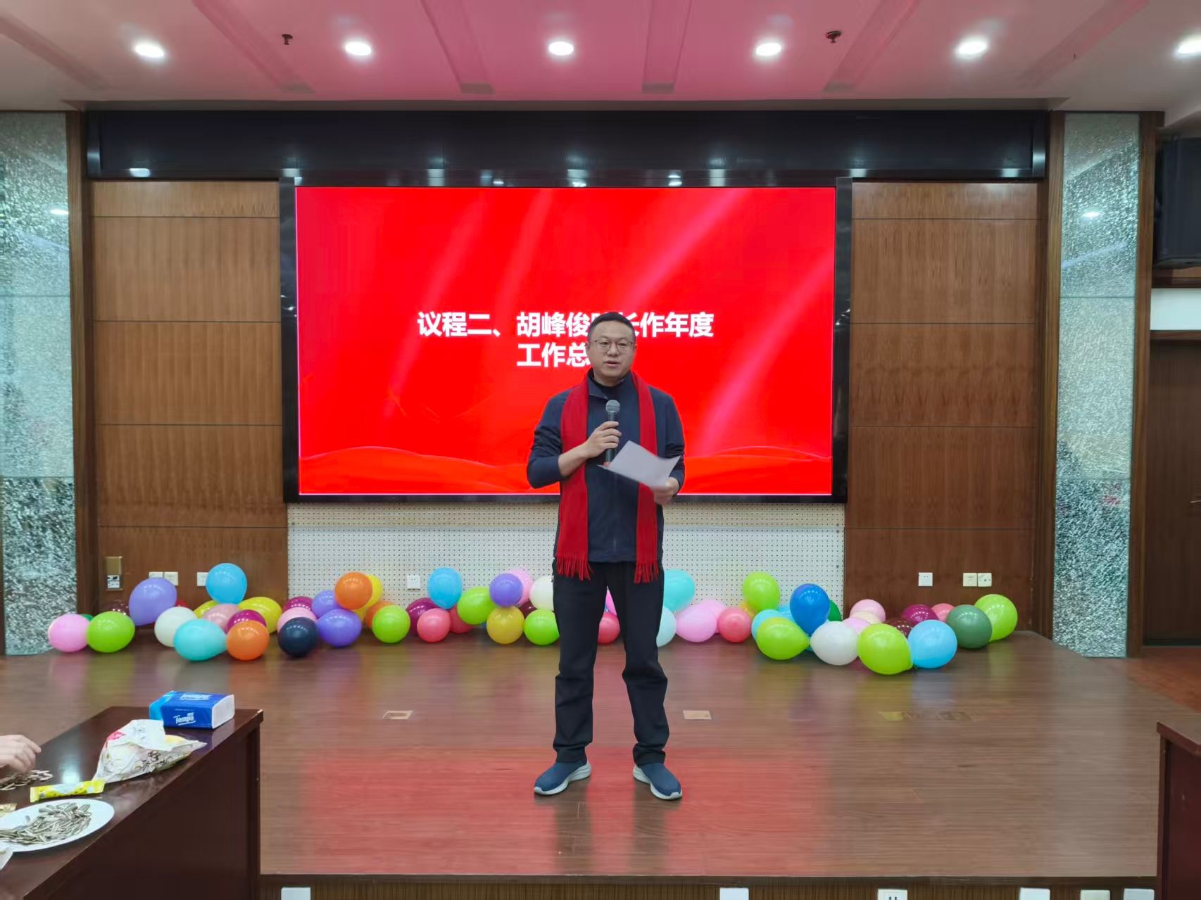 大会伊始,胡峰俊院长代表信息科技学院作年度工作总结。胡院长系统回顾了学院在2025年取得的发展成就,他指出,在全院教职工的团结奋斗下,学院在学科建设、人才培养、科学研究、党建工作等方面均取得了丰硕成果,多项核心指标在学校名列前茅,整体发展态势喜人。胡院长对全体教师的辛勤付出与卓越贡献表示衷心的感谢和充分的肯定,并鼓励大家在新的一年里再接再厉,携手推动学院发展再上新台阶。