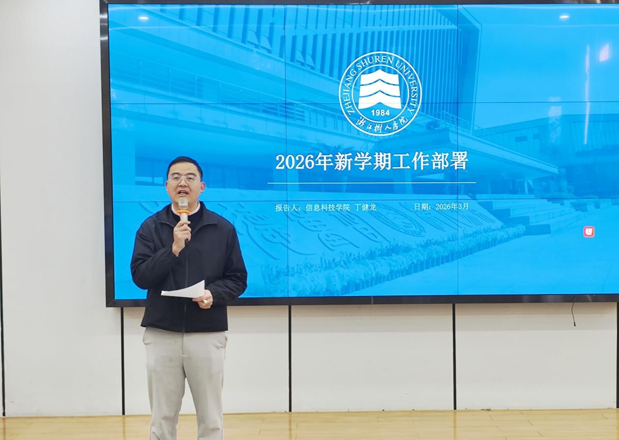 陈浚副校长作总结讲话,对信息科技学院近年来的发展成效给予充分肯定。他指出,信息科技学院的全体教职工凝心聚力、实干笃行,是学校各项工作的先行者,在学科建设、科研创新、人才培养等方面成果丰硕,高端项目不断突破,为学校发展作出了重要贡献。他引用《浙江宣传》提出的“四个向”——向新而行、向创而行、向梦而行、向制而行,激励全体教职工追逐树大人的共同梦想,依托学院良好基础,再接再厉、勇担使命。针对新学期工作,他对全体教职工提出四点要求:一是坚守师德底线,严守师德师风规范,防范网络舆情风险,以师德师风为第一标准,践行立德树人初心;二是深耕人才培养,聚焦学生成长成才,落实育人责任;三是坚守科研初心,甘坐“冷板凳”,深耕科研创新,着力提升学术高度与创新能力;四是筑牢安全防线,切实抓好实验室安全、学生心理安全、教学安全等各项工作,密切关注每一位学生的身心健康,发现问题及时协同各方做好处置,确保校园安全稳定。
