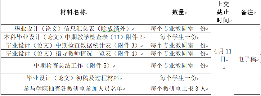 3.指导老师于4月5日前将学生材料提交给各专业毕设环节负责老师。