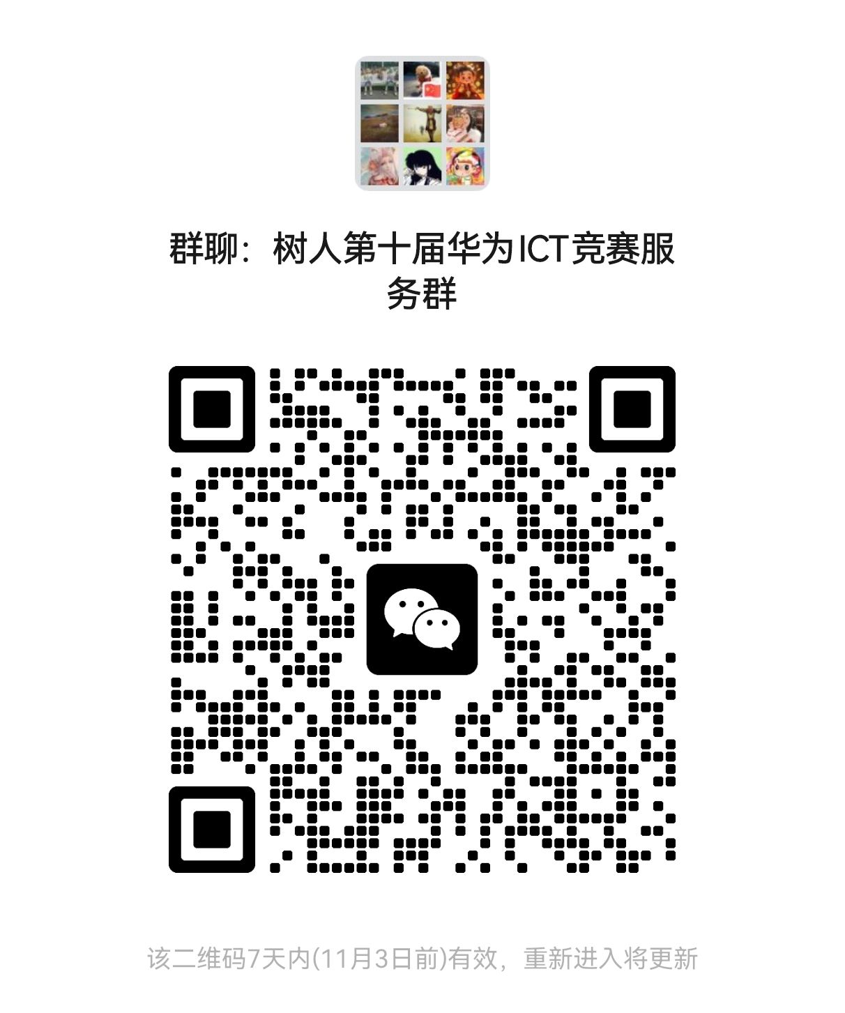 有意愿参与竞赛的同学请扫描下面二维码加入树人第十届华为ICT大赛服务群。