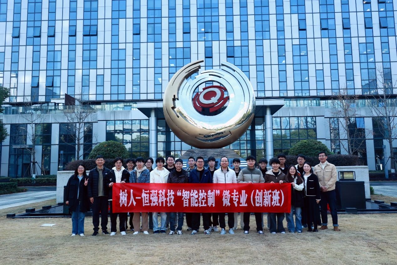 为深化产教融合,助力学生将理论知识与行业实践深度结合,12月19日,校安保部部长吴杨凯、信息科技学院教学副院长戴国勇、人工智能系主任叶芳芳带领系里骨干教师及智能控制微专业全体同学,走进优秀校友企业--浙江恒强科技股份有限公司开展参观学习活动,开启了一场沉浸式的行业实践之旅。