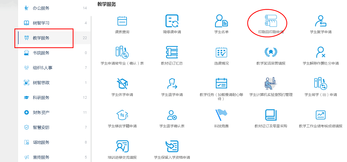 掌上树人--教学服务--印刷品印刷申请(注意,不是教材征订)